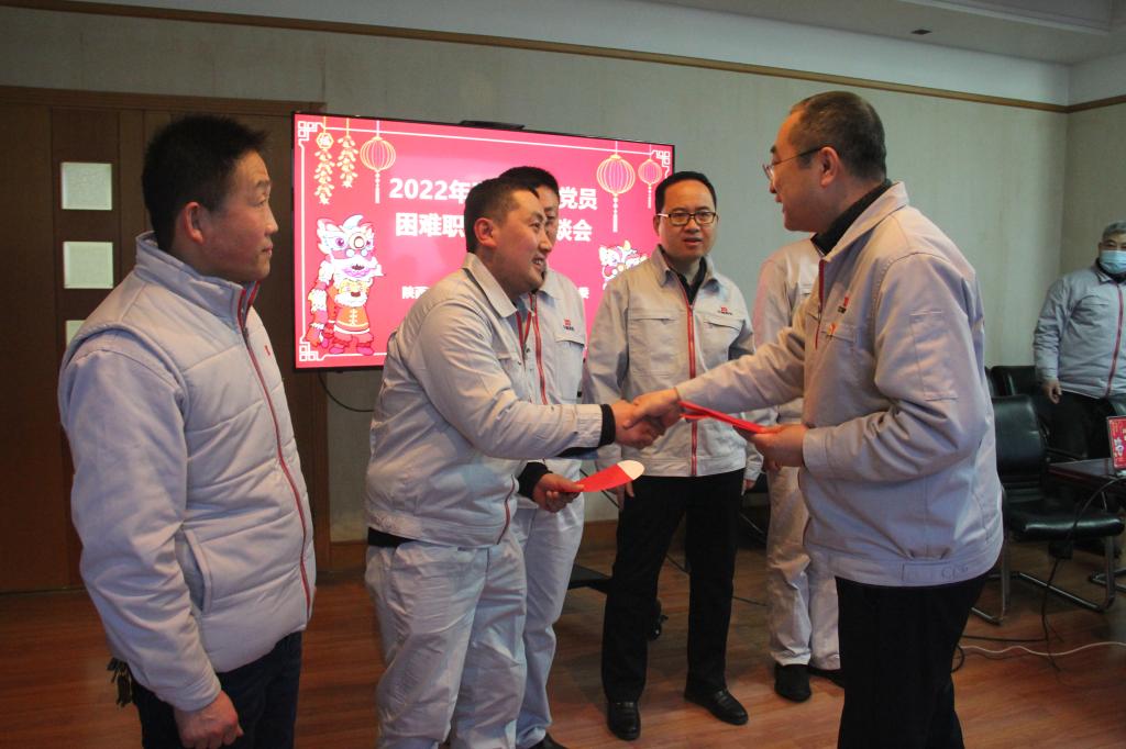 付宗喜向與會困難黨員和困難職工介紹了2021年度公司生產(chǎn)經(jīng)營情況和取得的成績,新的一年企業(yè)面臨的挑戰(zhàn),同時,企業(yè)沒有忘記任何一位生活中暫時存在困難的職工。這深深的鼓舞和激勵了與會人員,他們紛紛發(fā)言交流,表達(dá)對公司黨委的感謝之情,并愿意投身企業(yè)建設(shè),在各自崗位上兢兢業(yè)業(yè)、努力工作,盡個人的綿薄之力為企業(yè)發(fā)展做出貢獻(xiàn)難。謝洪濤向與會人員一年來在不同崗位上做出的貢獻(xiàn)表示感謝,并將慰問金送到大家的手中,表達(dá)了公司黨委的誠摯問候和新春祝福,鼓勵他們要增強(qiáng)生活信心、努力干好工作;公司黨委是大家堅強(qiáng)的后盾,企業(yè)在穩(wěn)步發(fā)展、我們的生活也會越來越好、每個人都應(yīng)該自強(qiáng)不息、不懈奮斗,做企業(yè)高質(zhì)量發(fā)展的參與者、見證者。
