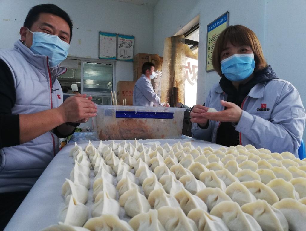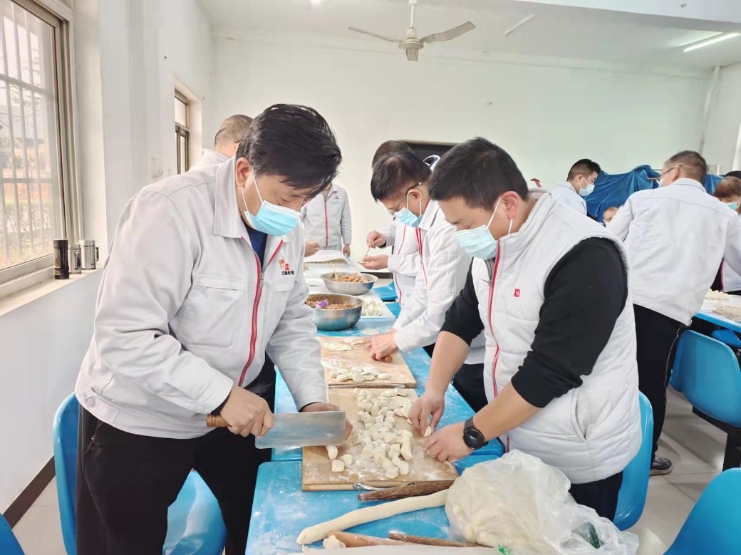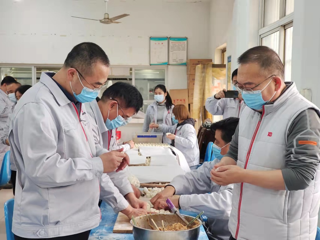 公司駐廠領導、一些干部職工緊張忙碌起來,有的搟有的包,場面溫馨感人,元寶形、月牙形,不同形狀的餃子整齊地排列在一起足有一萬多只,不僅分擔了后勤保障人員的工作壓力,還用實際行動彰顯著嚴肅活潑的工作作風和凝聚奮進的精神品質。好吃不過餃子,溫暖不過集體。在這個特殊時期能吃到手工水餃令人難忘,雖然暫時不能和家人、親友團聚,但大家相互關心、相互鼓勵讓每位員工感受到了大家庭的溫暖,心底涌起一股股暖流。