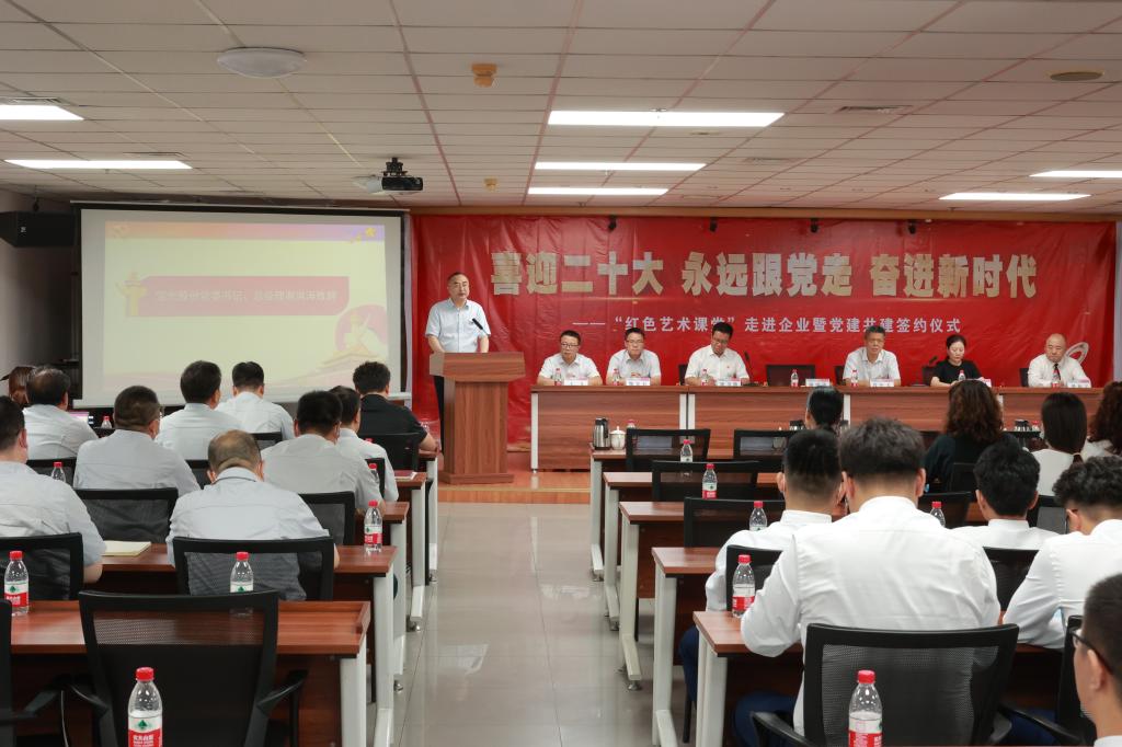 謝洪濤對(duì)各位領(lǐng)導(dǎo)、嘉賓的到來表示誠(chéng)摯歡迎,他指出,學(xué)校在人才培養(yǎng)、經(jīng)營(yíng)管理、技術(shù)研究等方面給公司提供了無私支持,此次“紅色藝術(shù)課堂”進(jìn)企業(yè)進(jìn)一步激發(fā)了干部職工崇高的愛黨愛國(guó)情懷,雙方凝聚共識(shí)、結(jié)對(duì)共建、簽約揭牌,將開啟校企黨建聯(lián)建共建新紀(jì)元,掀開校企黨建結(jié)對(duì)共建、資源共享、優(yōu)勢(shì)互補(bǔ)、共同提高的新篇章。為此,他提出三點(diǎn)希望:一是要充分認(rèn)識(shí)結(jié)對(duì)共建的重要意義,提高站位,增強(qiáng)責(zé)任感、緊迫感和使命感,圍繞校企高質(zhì)量發(fā)展,強(qiáng)強(qiáng)聯(lián)合,共同提高,努力建設(shè)校企黨建聯(lián)建共建的窗口和示范基地;二是要充分發(fā)揮結(jié)對(duì)共建的資源優(yōu)勢(shì),通過多種方式借鑒好方法好經(jīng)驗(yàn),實(shí)現(xiàn)黨建與生產(chǎn)經(jīng)營(yíng)、黨建與學(xué)校發(fā)展工作良性融合發(fā)展,實(shí)現(xiàn)雙方共贏;三是要充分彰顯結(jié)對(duì)共建的時(shí)代價(jià)值,持之以恒推進(jìn)落實(shí)黨建共建基地工作規(guī)劃,營(yíng)造濃厚的共建工作氛圍,按工作計(jì)劃扎實(shí)有效開展各項(xiàng)聯(lián)建共建活動(dòng)。