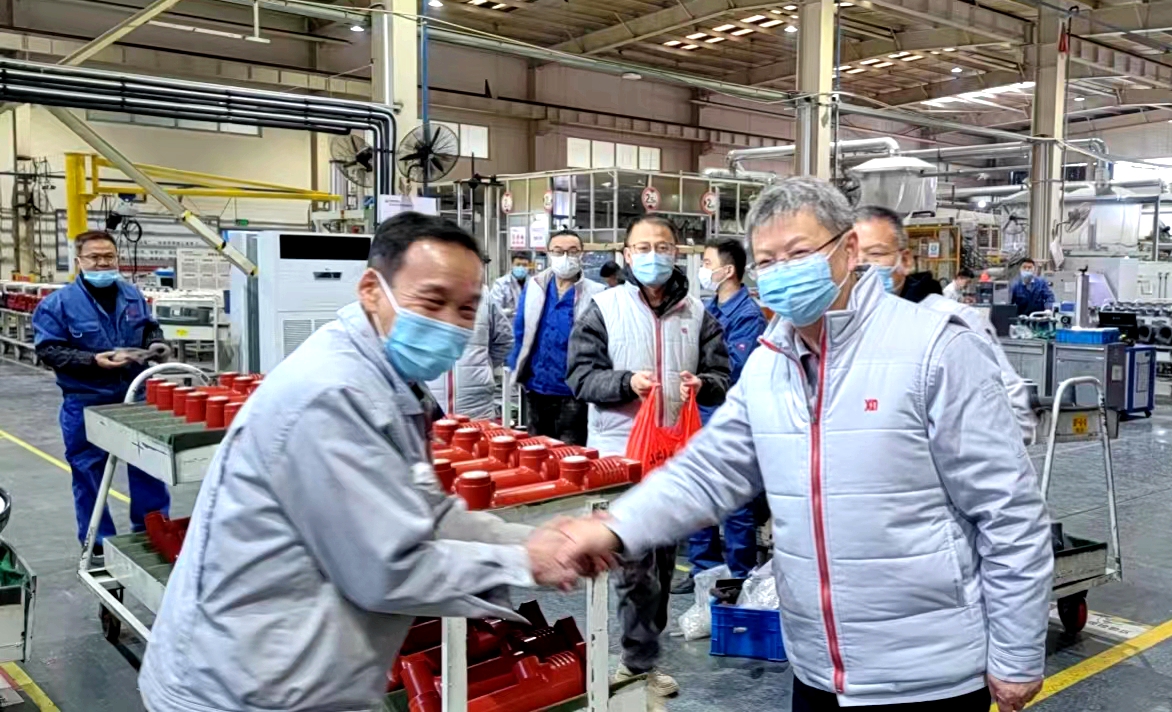 隨后,公司領(lǐng)導(dǎo)深入生產(chǎn)一線和科室,親切看望廣大職工,對(duì)同志們過(guò)去一年的辛勤付出和努力拼搏表示敬意和感謝,并向他們致以節(jié)日的問(wèn)候和新春佳節(jié)的祝福。每到一處,公司領(lǐng)導(dǎo)都親切地同職工一一握手問(wèn)好,給同志們拜年,在噓寒問(wèn)暖中體現(xiàn)關(guān)愛(ài),在聲聲問(wèn)候中表達(dá)祝福,祝愿大家在新的一年里身體健康、工作順利!同時(shí)詳細(xì)詢(xún)問(wèn)了解春節(jié)期間各項(xiàng)工作開(kāi)展情況以及各單位新一年的工作計(jì)劃,勉勵(lì)大家要以嶄新的姿態(tài)、飽滿(mǎn)的熱情,以“起步就是沖刺,開(kāi)局就是決戰(zhàn)”的奮斗姿態(tài)積極投入到新一年的工作中。