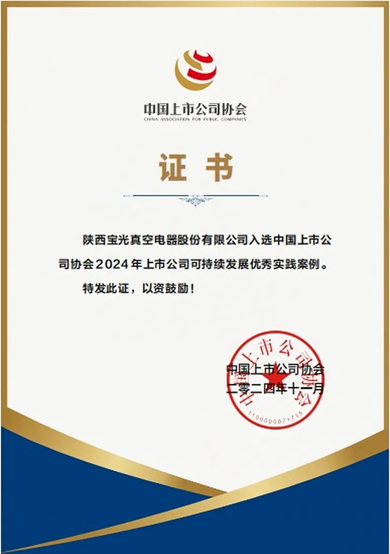 11月26日,中國(guó)上市公司協(xié)會(huì)發(fā)布“2024年上市公司可持續(xù)發(fā)展最佳及優(yōu)秀實(shí)踐案例”名單,寶光股份憑借在推動(dòng)生態(tài)文明建設(shè)、履行社會(huì)責(zé)任、完善可持續(xù)治理體系等方面的優(yōu)秀做法,從596篇投稿案例中脫穎而出,成功入選“2024年上市公司可持續(xù)發(fā)展優(yōu)秀實(shí)踐案例名單”。這是公司繼2023年入選中國(guó)上市公司協(xié)會(huì)“上市公司ESG優(yōu)秀實(shí)踐案例”后,在可持續(xù)發(fā)展方面獲取的又一殊榮。這不僅是對(duì)寶光股份在可持續(xù)發(fā)展領(lǐng)域所做努力的認(rèn)可,也是對(duì)未來發(fā)展?jié)摿Φ目隙ā?/span>