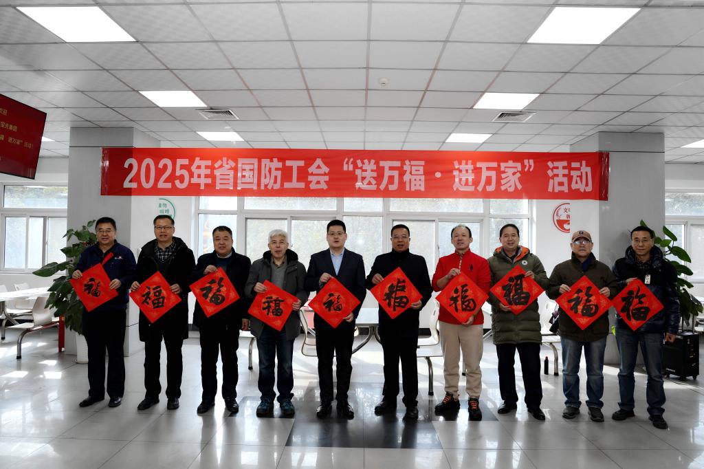 國防工會靳海斌副主席致辭,他表示“送溫暖”“送萬福·進萬家”是工會組織在重大節(jié)日向廣大職工送溫暖的重要內(nèi)容,福文化是中華民族的重要組成部分,是中華文化的價值理想和根本歸宿。今天邀請國防系統(tǒng)7位著名書法家為大家送春聯(lián)寫“?!弊?,用書香筆墨為職工朋友們送去新春的祝福和美好祝愿,也希望通過這種廣大職工喜聞樂見的形式切實把黨的關(guān)懷和溫暖送到廣大職工身邊,激發(fā)廣大職工的勞動熱情和創(chuàng)造熱情,增強實現(xiàn)中華民族偉大復(fù)興的精神力量。