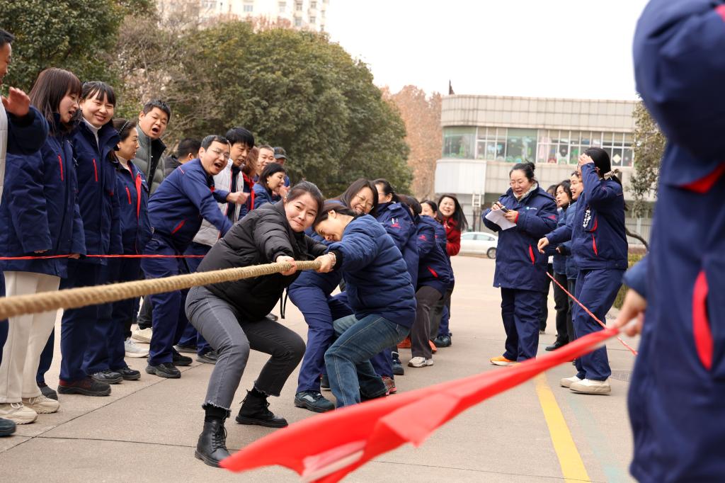 力拔千鈞展豪情,繩牽眾志啟新程。此次拔河比賽分為男子組和女子組。比賽現(xiàn)場(chǎng),各個(gè)隊(duì)伍都嚴(yán)陣以待,摩拳擦掌,躍躍欲試,眼神中透露出堅(jiān)定的決心和志在必得的信念。隨著裁判的一聲哨響,比賽正式拉開帷幕。剎那間,雙方隊(duì)員爆發(fā)出驚人的力量,雙手緊緊拽住繩子,身體拼命后仰,迸發(fā)出無(wú)盡能量。繩子中間的紅色標(biāo)記在兩隊(duì)之間來(lái)回移動(dòng),每一次小小的偏移都牽動(dòng)著場(chǎng)內(nèi)外的心。場(chǎng)外啦啦隊(duì)和觀眾扯著嗓子喊著號(hào)子為自己的隊(duì)員加油助威,加油聲、吶喊聲、歡笑聲此起彼伏,熱鬧非凡。