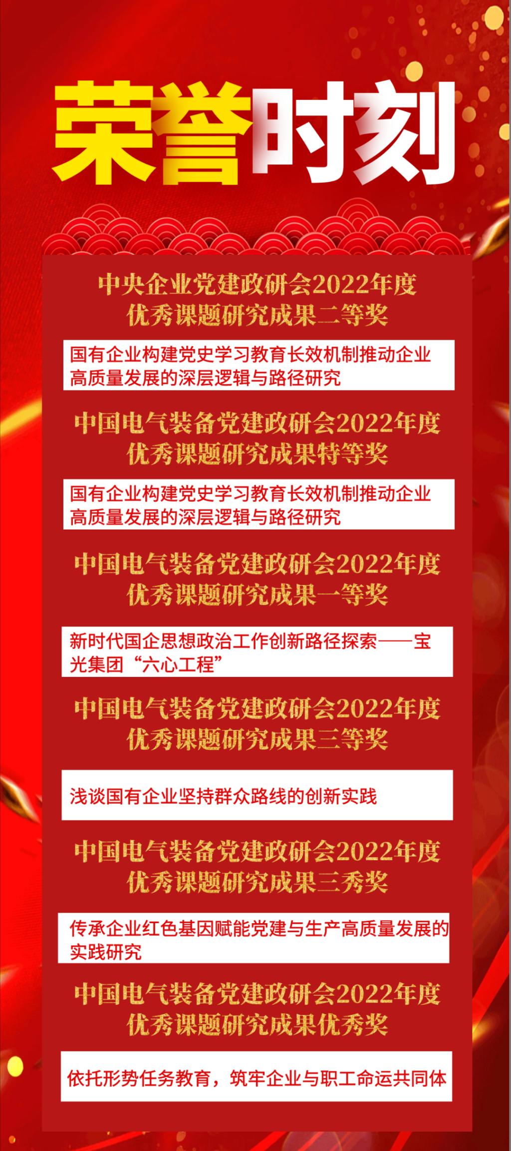 2022年,中國西電集團(tuán)堅(jiān)持以習(xí)近平新時代中國特色社會主義思想為指導(dǎo),深入學(xué)習(xí)宣傳貫徹黨的二十大精神,按照中國電氣裝備黨建政研會工作部署,立足企業(yè)實(shí)際,堅(jiān)持問題導(dǎo)向,優(yōu)化政研選題,聚焦研究重點(diǎn),積極參加中國電氣裝備及以上政研會課題立項(xiàng),切實(shí)抓好央企黨建政研會和中國機(jī)械政研會課題研究,形成8項(xiàng)具有應(yīng)用性和指導(dǎo)性的研究成果。同時,認(rèn)真落實(shí)中國電氣裝備黨建政研會工作要求,積極推進(jìn)公司2022年課題研究工作,確定3個重點(diǎn)研究方向,下發(fā)參考選題25個,搭建5個課題組,審定立項(xiàng)課題89個,形成A類成果26個。2022年,中國西電集團(tuán)榮獲“機(jī)械行業(yè)政治思想文化建設(shè)貢獻(xiàn)榜2021年度分榜上榜單位”與“2021年度機(jī)械行業(yè)機(jī)械紅色故事宣傳推廣貢獻(xiàn)單位”等榮譽(yù),中國西電集團(tuán)及所屬3家企業(yè)政研成果入選“2021年度機(jī)械行業(yè)政治思想文化建設(shè)特色突出案例”。