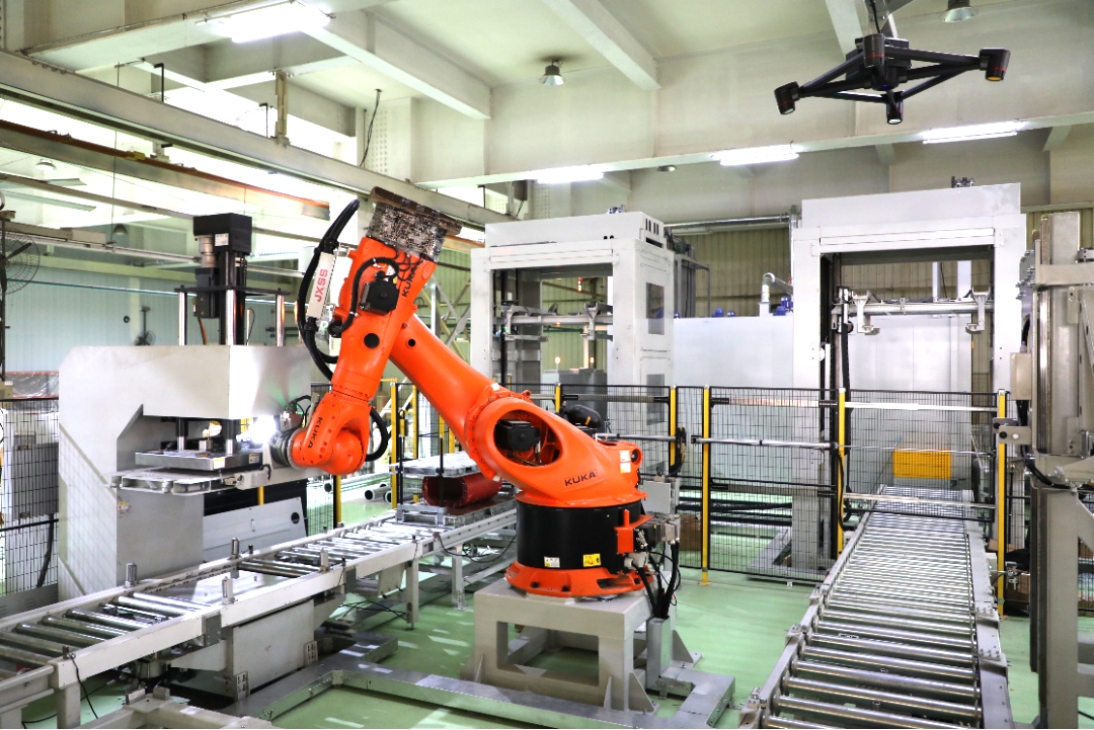 寶光股份充分應用5S管理和定置管理等精益理念,通過對稱雙回字形布局實現(xiàn)生產(chǎn)現(xiàn)場面積最大化利用,7臺高檔數(shù)控設備和2臺工業(yè)機器人全部實現(xiàn)在線運行監(jiān)測和故障診斷,設備狀態(tài)信息實時顯示和處理,有效保證人機協(xié)同作業(yè)的安全。產(chǎn)線的投入使用在降本的同時顯著提高零件生產(chǎn)質(zhì)量、效率和智能制造水平,目前,已累計加工導電桿零件8萬余件,提高生產(chǎn)效率30%以上,零件生產(chǎn)周期縮短50%以上。