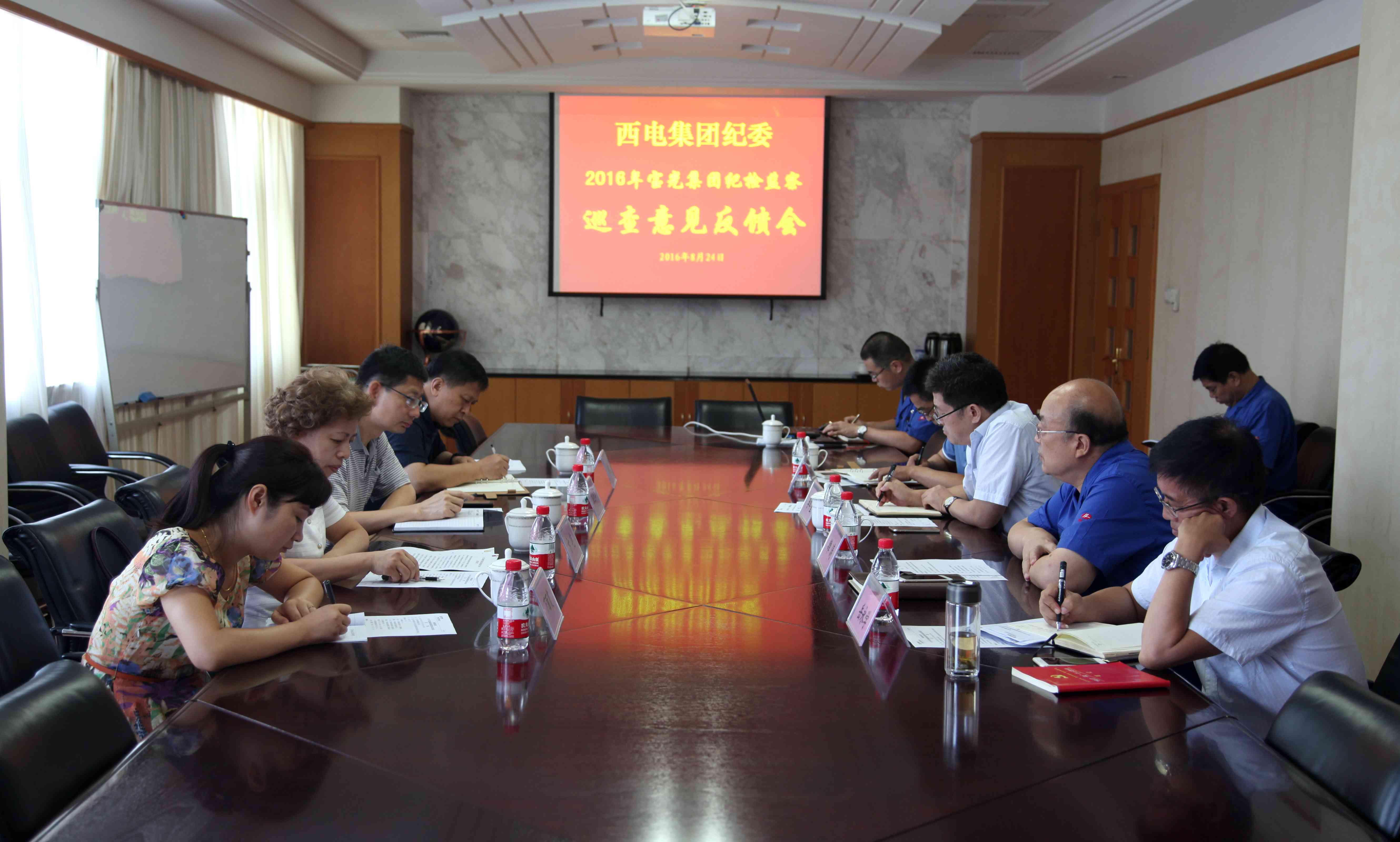 根據(jù)中國西電集團(tuán)紀(jì)委監(jiān)察部的安排部署,8月24日上午,西電集團(tuán)紀(jì)委第三紀(jì)檢監(jiān)察巡查組,來公司召開了紀(jì)檢監(jiān)察巡查工作意見反饋會(huì),對西電集團(tuán)第三紀(jì)檢監(jiān)察巡查組7月21、22日來寶光集團(tuán)開展的紀(jì)檢監(jiān)察巡查結(jié)果進(jìn)行了反饋。西電集團(tuán)紀(jì)委副書記、監(jiān)察部部長李江平,西電集團(tuán)紀(jì)檢監(jiān)察第三巡查組組長方艷,西電集團(tuán)第五紀(jì)檢監(jiān)察室主任胡耿民,西電集團(tuán)紀(jì)檢監(jiān)察第三巡查組成員萬麗霞,寶光集團(tuán)班子成員李軍望、雒濤、岳永學(xué)、李波參加了會(huì)議。會(huì)議由寶光集團(tuán)黨委書記雒濤同志主持。