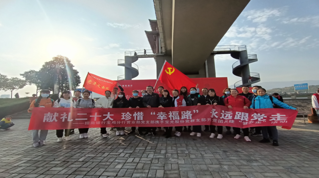 秋日暖陽,金風(fēng)送爽,為慶祝黨的二十大勝利召開,豐富職工文化生活,10月22日上午,寶光股份黨群黨支部與招商銀行寶雞分行營業(yè)部黨支部攜手開展黨團(tuán)共建“健步走”活動(dòng),黨群黨支部近20名黨員群眾參加了活動(dòng)。