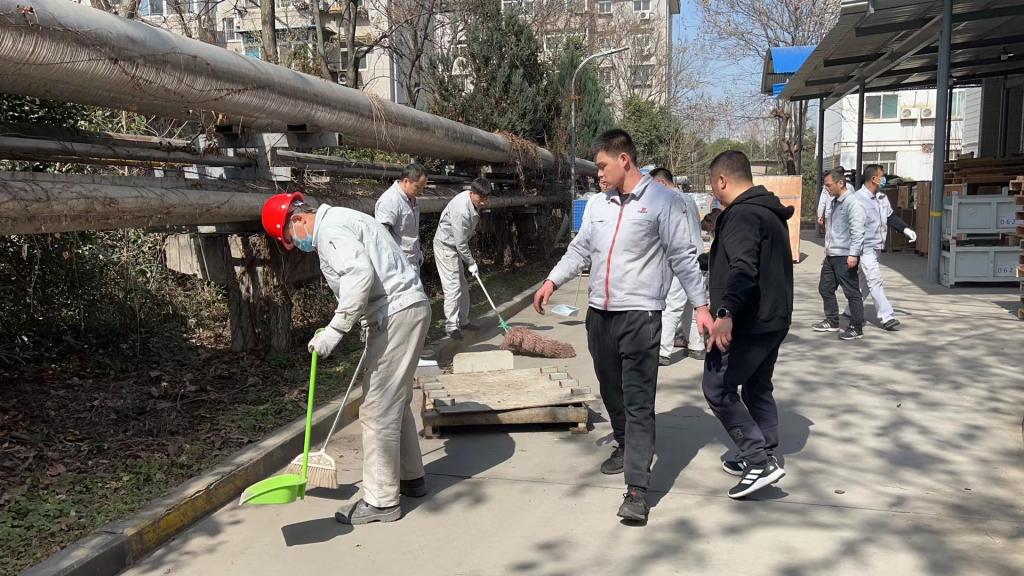 精工分公司黨支部電器產線職工對產線窗戶上玻璃和窗臺進行擦拭,并對花壇內樹葉垃圾、花房前建筑垃圾進行了仔細清掃和集中裝運清理;波紋管產線職工對產線外車棚地段衛(wèi)生進行清理,并對亂停亂放的車輛進行規(guī)范擺放。通過2個小時的緊張勞動,路面變得整潔干凈、窗戶玻璃變得一塵不染、花房前的環(huán)境煥然一新。