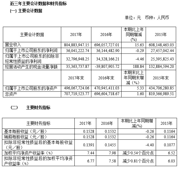 寶光股份2017年度主要財務(wù)指標(biāo)