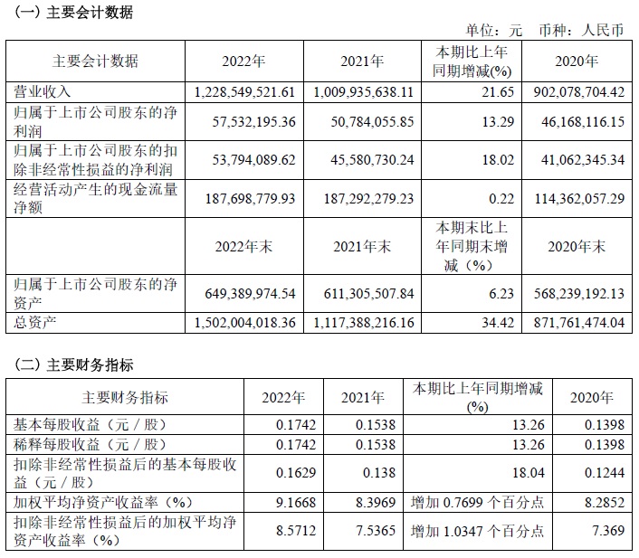 寶光股份2022年度主要財(cái)務(wù)指標(biāo)